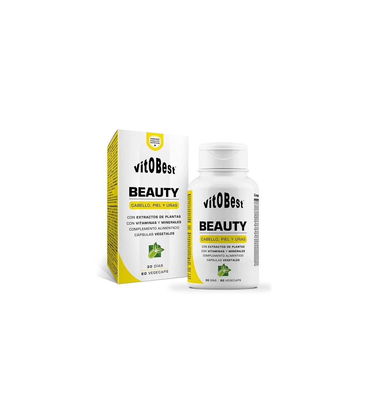 Beauty de Vitobest es un suplemento en cáspulas que contiene una novedosa fórmula elaborada a partir de extractos vegetales, vitaminas, minerales y aminoácidos con propiedades nutritivas ideales para ayudarte a mantener la piel, las uñas y el cabello en condiciones normales.