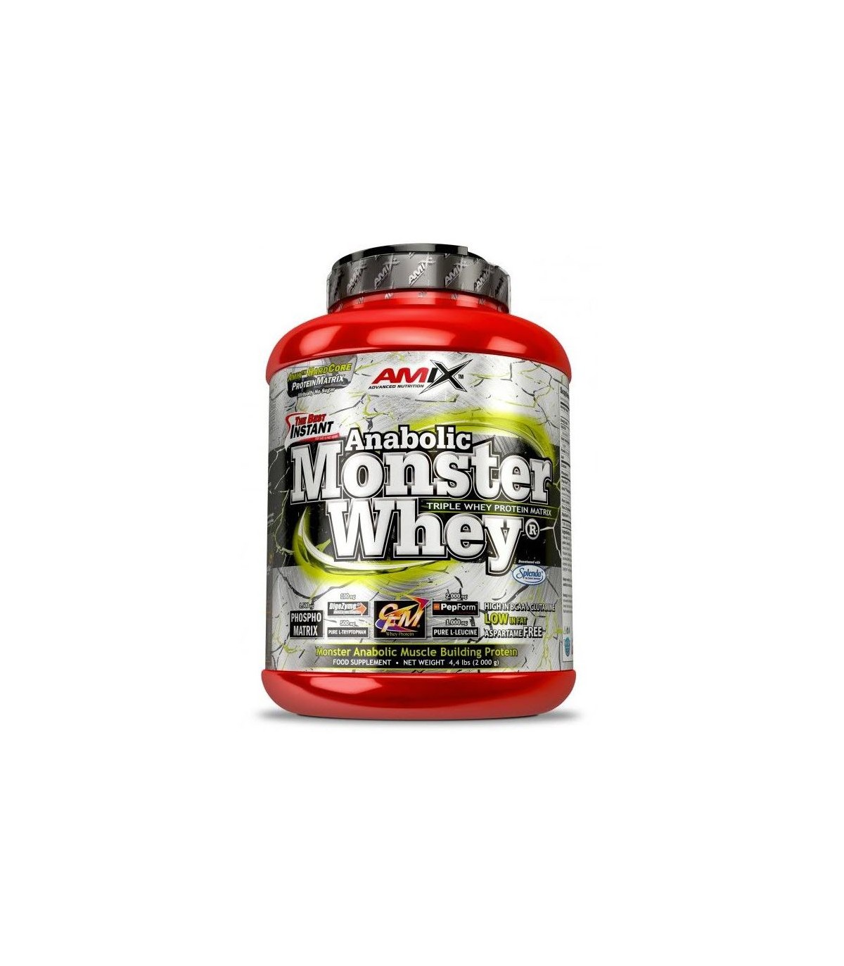 Anabolic Monster Whey® contiene una matriz única de proteína de suero denominada Amix Triple Whey Matrix, que incluye las tres fuentes de proteína de suero de mayor valor biológico, como son la proteína ultrafiltrada a baja temperatura instantánea de concentrado de proteína de suero de leche; el aislado de suero de leche CFM (Cross-flow microfiltered) con fracciones de beta-lactoalbumina, alfa lactoalbumina, albumina de suero bobino, inmunoglobulina, glicomacropéptidos, lactoperina y lactoperosidasa; y el hidrolizado de proteína de suero. Además, su excelente aminograma se completa con otras dos importantes fuentes de proteína como son los aminoácidos procedentes del aislado de carne de ternera y la proteína de caseína micelar de la leche.